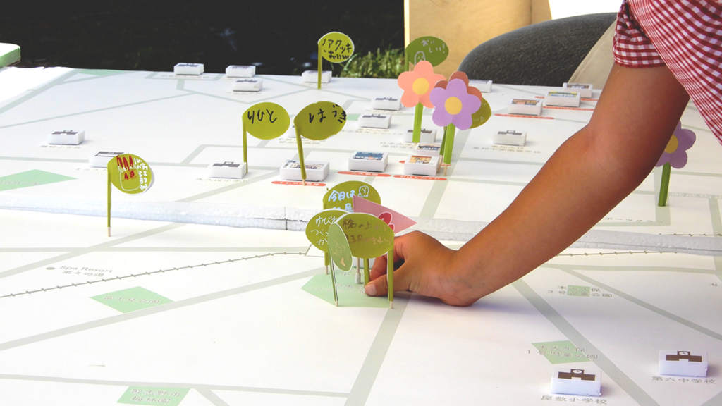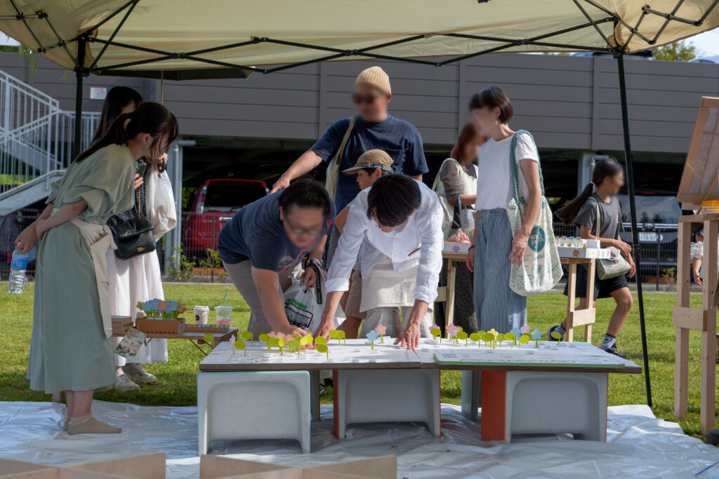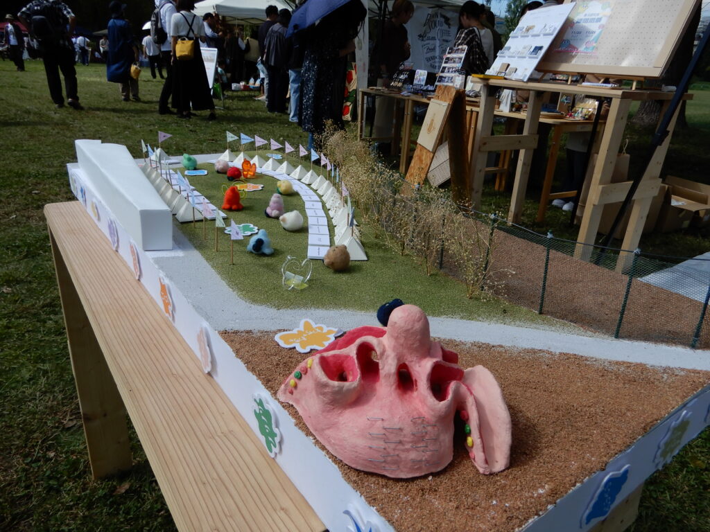 街の方々から「くらけん」の愛称で呼んでいただいてるデザイン科学科の倉斗研究室も,当日は,ジモトの魅力をおみやげを通して発信する「ならしのみやげ」のセレクトショップと,まちの魅力を共有するマップワークショップで出展。さらに,福祉法人さんや福祉を学ぶ他大学の学生と続けている福祉を語るプラットフォーム「フフプ」として法人さんと一緒に出展しました。