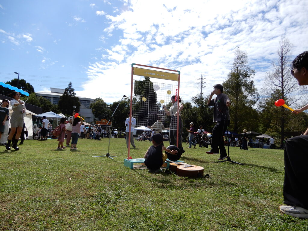 福祉法人さんとの「フフプ」では,ボッチャ体験とギターとカホンのフリー演奏スポットを設置。沢山の子どもたちが集まりました。