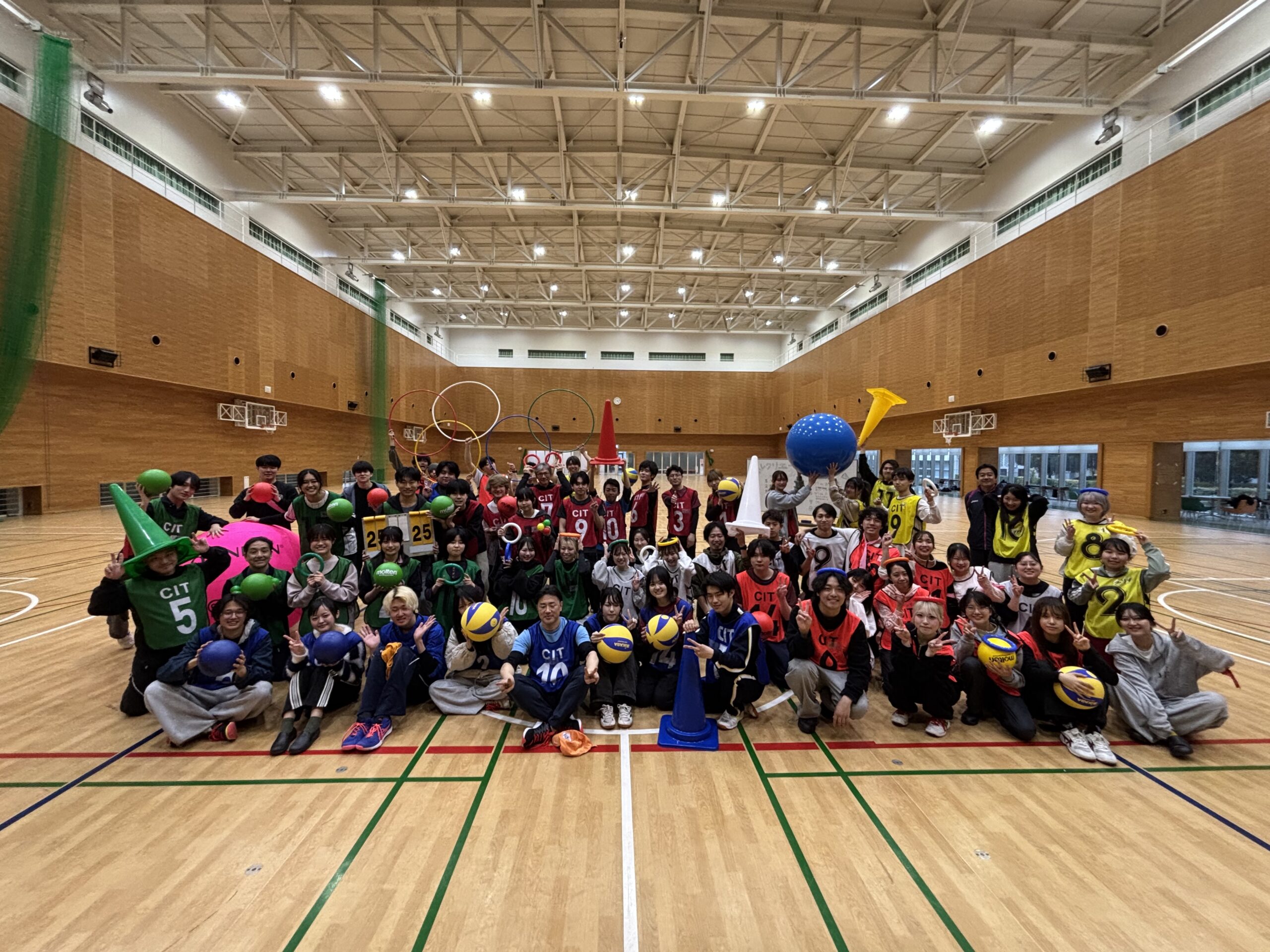 当日は,雨天のなか,教員・学生合わせて60名超えの参加者が,新習志野キャンパスの体育館に集合して,学年や教員と学生の立場を超えて交流を行いました.体育教室の教員の指導のもと,スタッフ学生によって企画された数々のレクリエーションゲームで,かなりハードな内容もあり,春休みに鈍ったカラダを再起動させました.